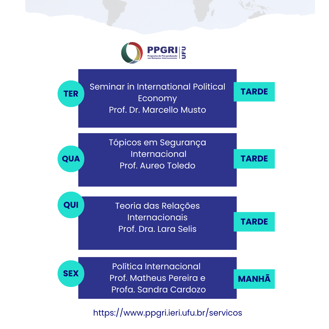 - Terça (Tarde) - Seminar in International Political Economy - Presencial